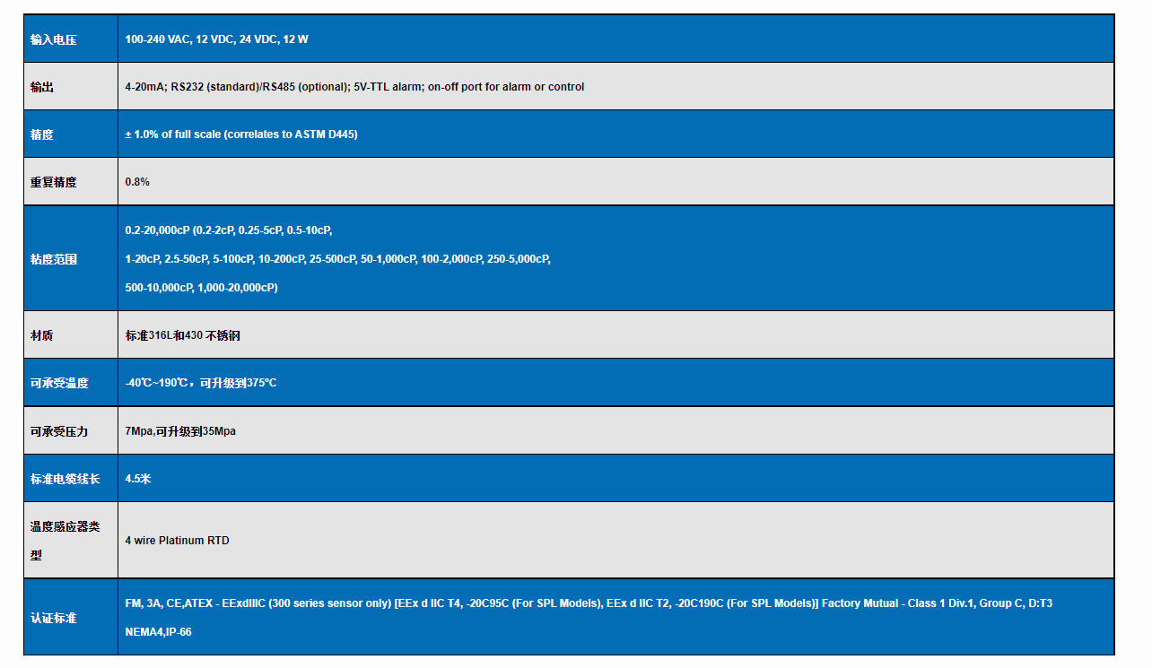 6.可選溫度補償功能TCV,符合ASTM D341標準。